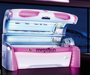 Wij werken uitsluitend met professionele zonnebanken van het merk Megasun.